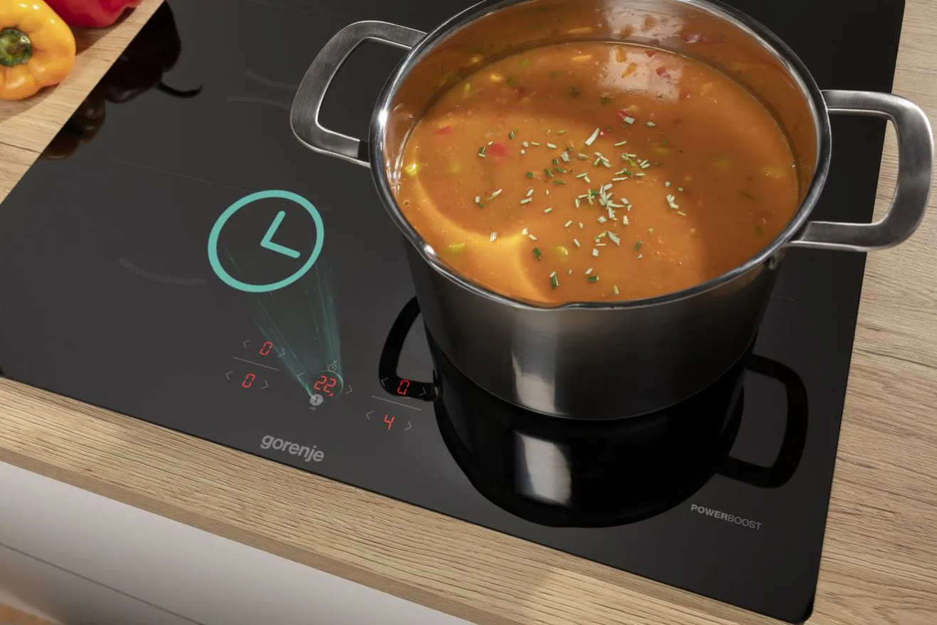 S varnými deskami Gorenje už nikdy nebudete muset odhadovat, jak dlouho pokrm vlastně vaříte. Časovač je nyní oddělen od úrovní výkonu, což usnadňuje jeho nastavení, používání a sledování. Vyhrazené šipky na displeji časovače zobrazují čas pro každou zónu, což vám dává úplnou kontrolu nad procesem vaření. Používání časovače je snadné a intuitivní. Díky němu budete vařit naprosto bezstarostně.