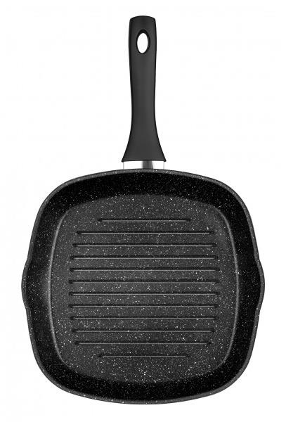 Pánev je vyrobena z kvalitního hliníkového odlitku s velmi kvalitním tvrdým nepřilnavým povrchem s minerálním základem. Tento povrch je vyjímečně odolný mechanicky i na vysoké teploty. Sendvičové dno rovnoměrně rozvádí teplotu po celé ploše.Mřížkované dno umožňuje kvalitní grilování a smažení.