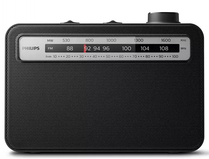 Přenosné rádio, FM/AM tuner, vestavěný reproduktor, možnost připojení sluchátek, napájení bateriemi